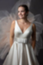 MM285-Soft Aline satin wedding dress with drape front channel boned bodice