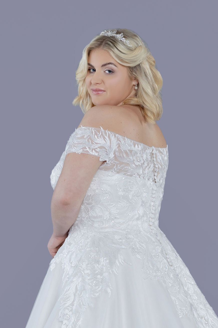 Aline / V Neckline / Sequin lace & Tulle skirt / Zip and Buttons to train