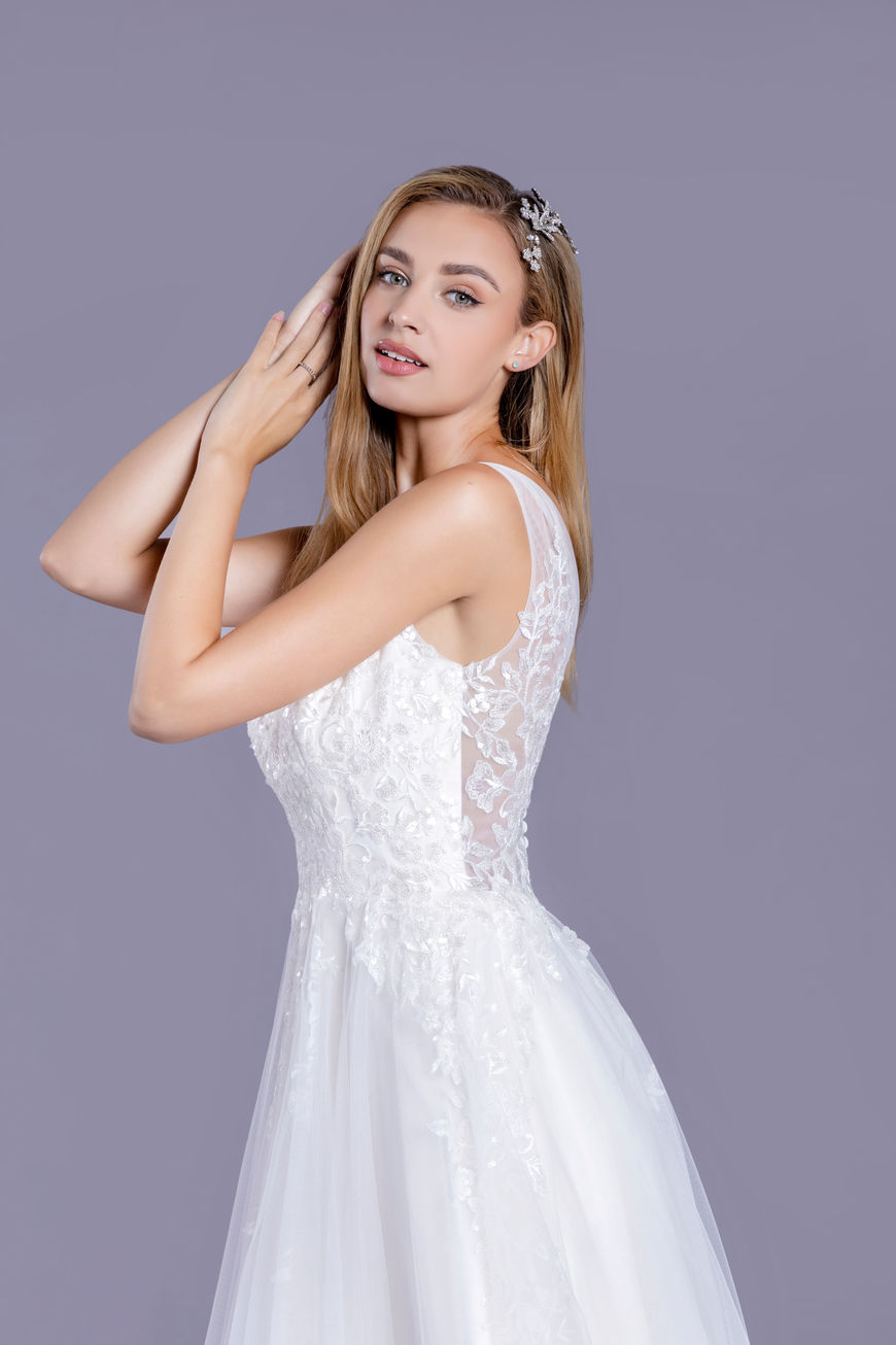 MM170-A-ine sparkle lace wedding dress with sheer lace back