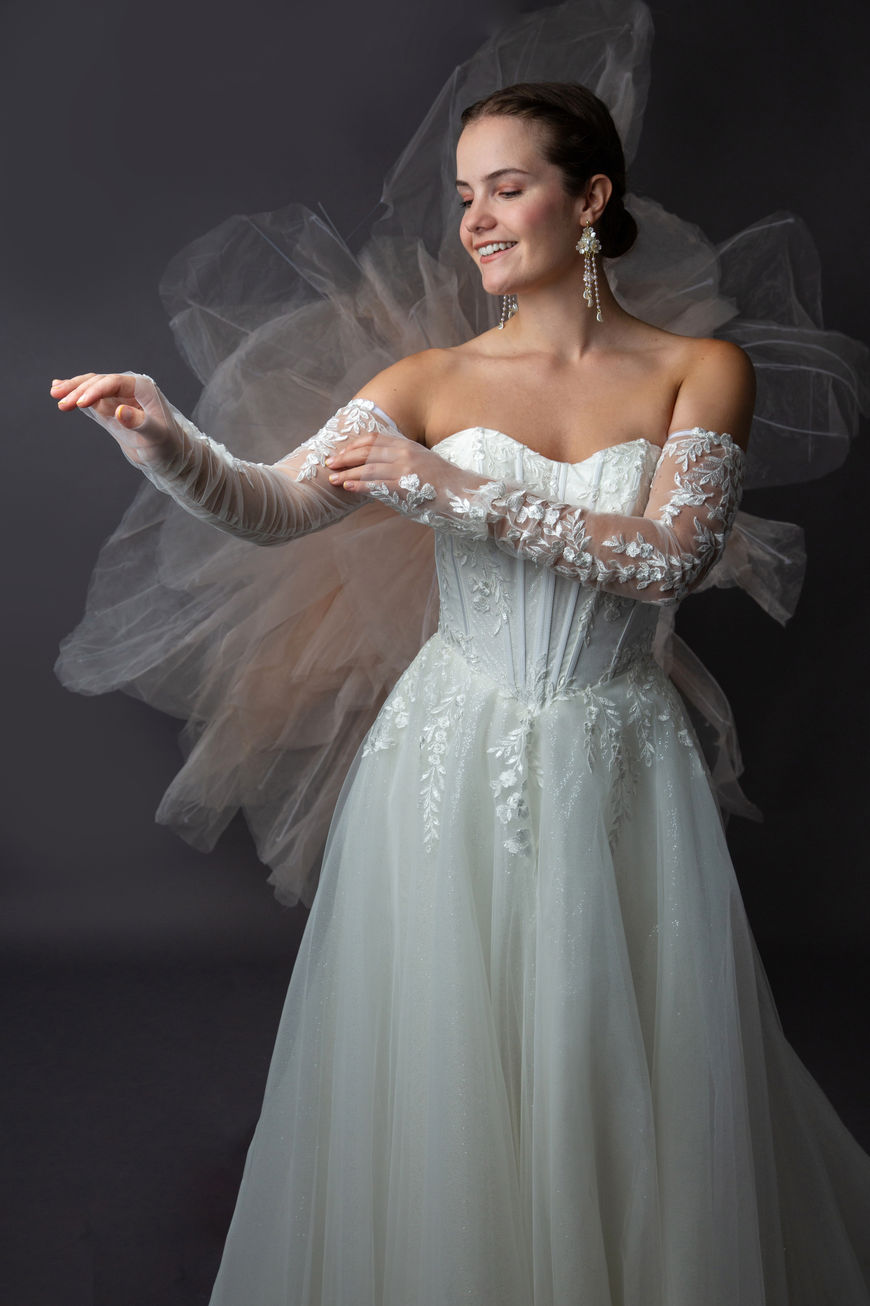 Corset Lace straps bodice wedding dress with lace detachable sleeves