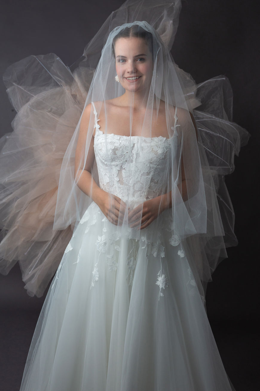 Square neckline wedding dress with lace bodice, soft tulle & lace skirt